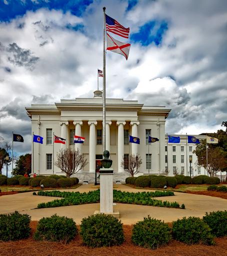 Keywords: montgomery alabama state capitol buildings dome architecture landmark historic statehouse southern downtown government legislation laws hdr sky clouds flags american city cities urban