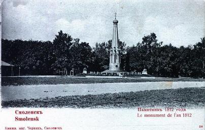 | Keywords: Monument to the Heroes of the Patriotic War of 1812 2.jpg  en Monument to the Heroes of the Patriotic War of 1812 in Smolensk ru Памятник ге оям Отечественной войны 1812 года в Смоленске О игинальная отк ытка Книжн маг Че няк Смоленск before 1917 года PD-RusEmpire 20th-century postcards Postcards of Smolensk |