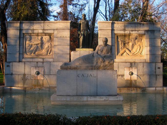 | Keywords: Monument to Santiago Ramon y Cajal, Parque del Buen Retiro, Madrid.JPG Front view of the Monument to Santiago Ramón y Cajal 1852 “1934 at Paseo de Venezuela a walk in the Retiro Park Jardines del Buen Retiro in Madrid Spain Made by sculptor Victorio Macho and inaugurated in 1926 Vista frontal del Monumento a Santiago Ramón y Cajal 1852 “1934 de los Jardines del Buen Retiro de Madrid España en el Paseo de Venezuela Realizado por el escultor Victorio Macho e inaugurado en 1926 Own Daderot 2008-12-09 Public domain Monuments in the Parque del Buen Retiro Cajal Monuments and memorials to Santiago Ramón y Cajal Victorio Macho 1926 bronze statues in Spain |