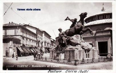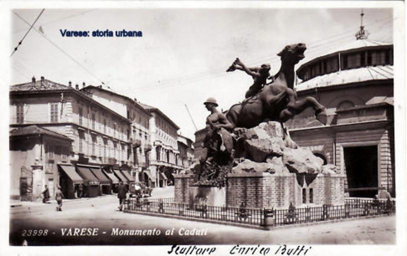 Keywords: Il monumento ai Caduti, opera di Enrico Butti (1925), collocato in piazza XX Settembre. Alle spalle del monumento il Politeama (aperto nel 1892) e a sinistra via Morosini. varese monumentoaicaduti piazzaxxsettembre viamorosini enricobutti