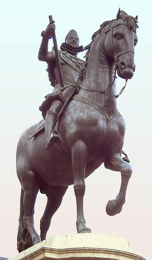 | Keywords: Monumento a Felipe III (Madrid) 02.jpg Bronze equestrian statue of Philip III of Spain 1578 1621 Started by Giambologna 1529 1608 and finished in 1616 by Pietro Tacca 1577 “1640 It´s part of the monument at the Plaza Mayor of Madrid Spain inaugurated in 1848 Estatua ecuestre de bronce de Felipe III de España 1578 1621 Comenzada por Juan de Bolonia 1529 1608 y acabada en 1616 por Pietro Tacca 1577 “1640 Es parte del monumento situado en la Plaza Mayor de Madrid España e inaugurado en 1848 own Luis GarcÃa Zaqarbal 2006-04-17 Zaqarbal Statue of Philip III of Spain Madrid Files by User Zaqarbal |