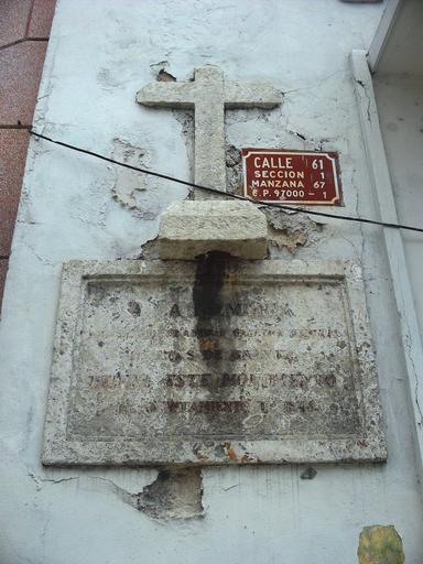 | Keywords: Monumento a Lucas de Gálvez, Mérida, Yucatán (01a).jpg 20 967313 -89 621457 9 Lápida colocada por el ayuntamiento de Mérida en 1844 en el sitio donde fuera asesinado en 1792 Don Lucas de Gálvez entonces gobernador de Yucatán Por la antigüedad del monumento y por la libertad de panorama está en dominio público y puede ser fotografiado libremente 2011-02-06 own Inri FoP-Mexico PD-Mexico Cc-zero Monumento a Lucas de Gálvez | ||||