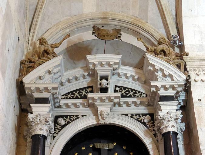 | Keywords: monuments sacred architecture church architecture church the cathedral building tourism sacral skull the bones buildings faith gothic monument sacred building bow column religious temple interior of the church the art of religion house of prayer sculpture object croatia trogir tour places of interest stone head stone |