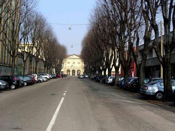 Keywords: Monza-via-Umberto-I-00.jpg it MB Monza via Umberto I - sullo sfondo l'ingresso del vecchio ospedale San Gerardo in via Solferino - a sinistra si intravede il palazzo degli uffici della ex CGS own Albertomos 2009 nessuna Viale Umberto I Monza Street trees in Monza |