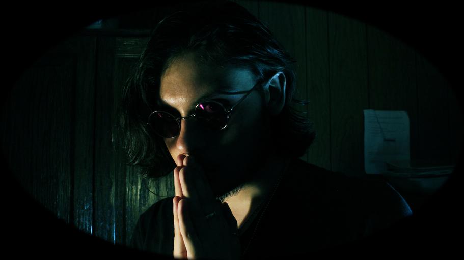 Keywords: moody lighting dark grunge creative vivid goth artistic artist prayer pray sexy model hair gothic mysterious black evil hairstyle portrait young face cinematic close studio