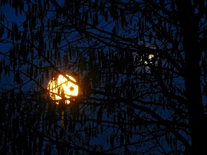 Keywords: moon moon shine moon light street lamp hazelnut tree trees branch night silhouette light