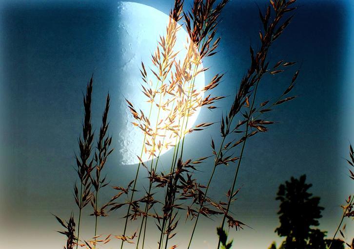 Keywords: moon moonlight half moon sky twilight night sky collage grasses atmospheric light utopian