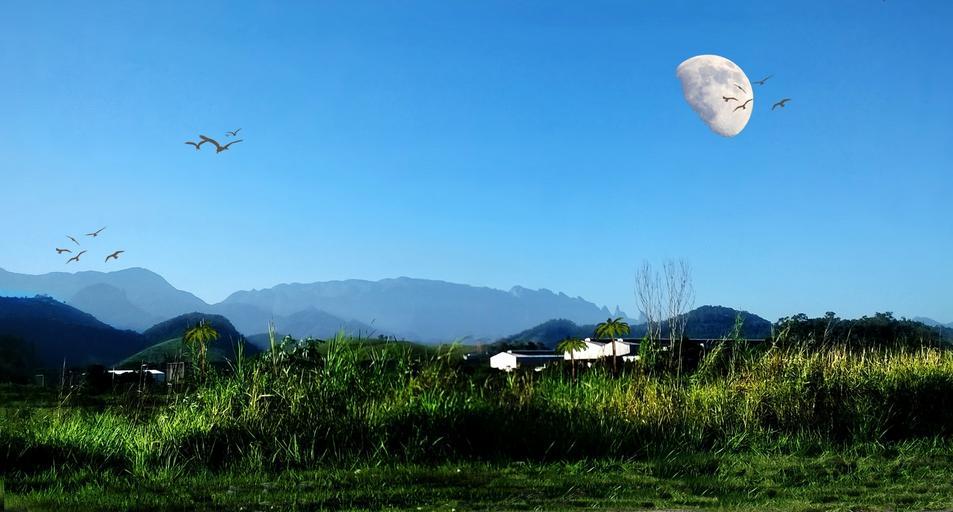 Keywords: moon mountains serra birds nature blue sky landscape green trip brazil rio de janeiro
