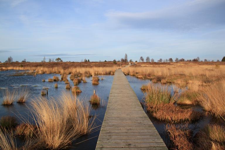 Keywords: moor moorland away nature conservation nature moist reed h wide trees landscape nature reserve wetland area lake water web grass autumn plant meadow swampy grasses swamp boardwalk wooden boards lonely belgium venn hike bridge wooden bridge