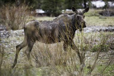 Keywords: moose cow female running wildlife animal nature wilderness mammal winter looking outdoors