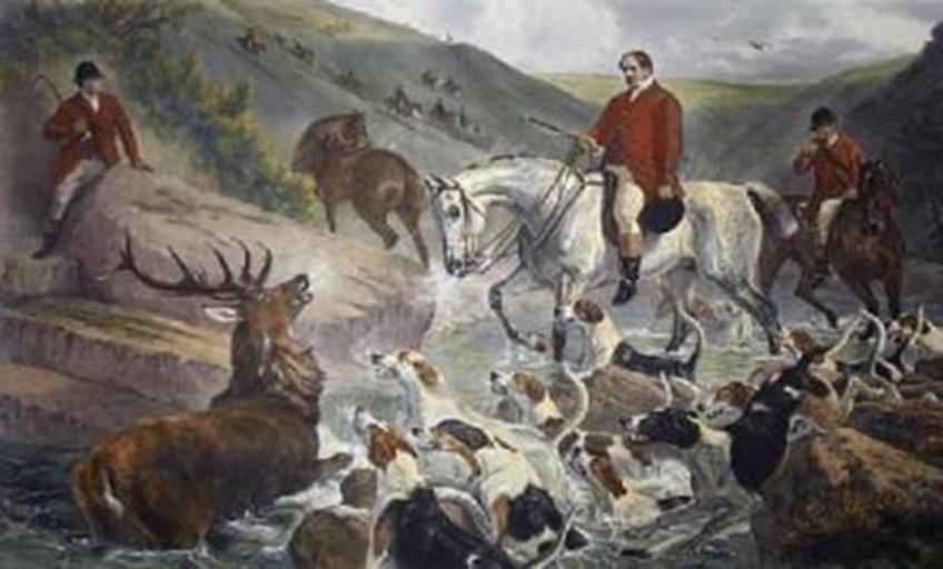 Keywords: MordauntBissetBySamuelJohnCarter.jpg A September evening Exmoor Forest A wild stag at bay with portraits; to be presented to the master of the Devon and Somerset Staghounds Mordaunt Fenwick-Bisset Esq at the beginning of his seventeenth season by upwards of 400 deer preservers and friends The painting was presented to him at a dinner at Dunster on 14th September 1871 Fortescue Hon John Record of Staghunting on Exmoor London 1887 p 50 He is shown on his hunter Chanticleer surrounded by his favourite hounds with a stag at bay at Badgworthy Water Exmoor Forest object history exhibition history Exhibited at the Royal Academy summer exhibition 1871 A September evening Exmoor Forest A wild stag at bay with portraits; to be presented to the master of the Devon and Somerset Staghounds Mordaunt Fenwick-Bisset Esq at the beginning of his seventeenth season by upwards of 400 deer preservers and friends credit line accession number place of creation http //www easyart com/art-prints/Samuel-John-Carter/Devon- 26-Somerset-Staghounds- 28Restrike-Etching 29-37127 html PD-old-100 Samuel John Carter Hunting costume in portrait paintings Hunting in Devon Paintings of male hunters with dogs Paintings of hunting men on horseback |