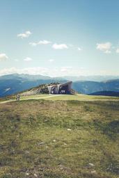 Keywords: more destination view viewpoint mountain leisure plateau places of interest tourism holiday hiking mountaineering nature nature park forest fields landscape rock distant view foresight mountains trees south tyrol alpine dolomites italy north italy reinhold messner mmm museum