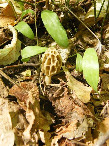 Keywords: Morel mushroom in woods.JPG en Morel mushroom in woods Delaware 2008-11-03 00 36 06 own PookieFugglestein cc-zero Uploaded with UploadWizard Unidentified Morchella