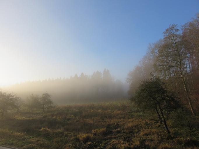 Keywords: morgenstimmung fog landscape haze autumn nature meadow morning light ground fog morning