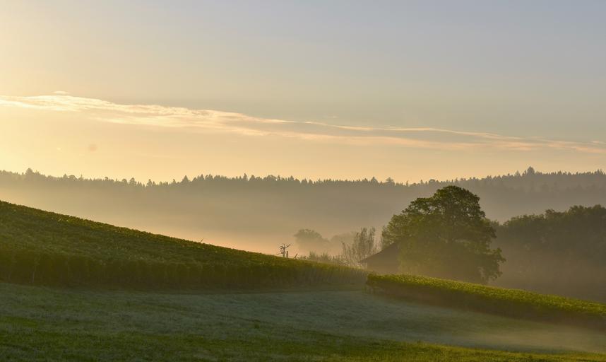 Keywords: morgenstimmung sunrise skies landscape back light morning fog mood nature autumn