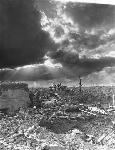 | Keywords: Morning a Passchendaele. Frank Hurley (glass negative).jpg The morning after the first battle of Paschendaele Paschendale Australian Infantry wounded around a blockhouse near the site of Zonnebeke Railway Station 12 October 1917 1 negative glass ; full plate According to Robert Dixon this is a composite image one of four versions with different sunburst formations in the clouds created from originally separate negatives See also File Morning a Passchendaele Frank Hurley jpg National Library of Australia<br>file nla pic-an23816538 1917-10-12 Creator Frank Hurley PD-Australia NLA Frank Hurley B 80px First Battle of Passchendaele World War I forces of Australia in Belgium World War I Photographs by Frank Hurley Glass plate negatives |
