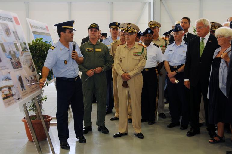 | Keywords: Moroccan military and American Ambassador Kaplan.jpg  en U S and Moroccan members General Abdelaziz Bennani and American ambassador Samuel L Kaplan listen during a briefing on Block 52 F-16 Fighting Falcon capabilities during an aircraft delivery ceremony at Ben Guerrir Air Base Aug 4 2011 The Royal Moroccan Air Force unveiled the first four of 24 F-16 Fighting Falcons becoming the 25th country to ever receive the aircraft 2011-08-04 http //www af mil/shared/media/photodb/photos/110804-F-GR962-668 jpg U S Air Force Staff Sgt Stefanie Torres PD-USGov Uploaded with UploadWizard Military of Morocco Generals of Morocco Ambassadors of the United States to Morocco |