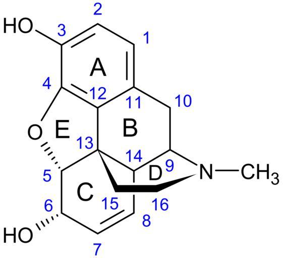 Keywords: Morphine numbered.svg en Morphine structure numbered own Ring0 2009-12-22 200px Morphine