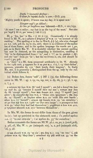 Keywords: Morris-Jones Welsh Grammar 0275.png A scan of the book A Welsh Grammar Historical and Comparative by John Morris-Jones Morris-Jones_Welsh_Grammar_ png 0274 0276 http //www archive org/details/welshgrammarhist00joneuoft 1913 John Morris-Jones 1864 “1929 Author died more than 70 years ago - public domain PD-old Welsh Grammar by John Morris-Jones |