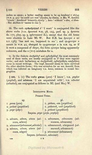 Keywords: Morris-Jones Welsh Grammar 0353.png A scan of the book A Welsh Grammar Historical and Comparative by John Morris-Jones Morris-Jones_Welsh_Grammar_ png 0352 0354 http //www archive org/details/welshgrammarhist00joneuoft 1913 John Morris-Jones 1864 “1929 Author died more than 70 years ago - public domain PD-old Welsh Grammar by John Morris-Jones