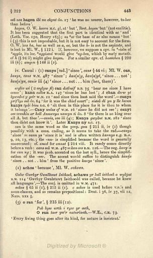 | Keywords: Morris-Jones Welsh Grammar 0443.png A scan of the book A Welsh Grammar Historical and Comparative by John Morris-Jones Morris-Jones_Welsh_Grammar_ png 0442 0444 http //www archive org/details/welshgrammarhist00joneuoft 1913 John Morris-Jones 1864 “1929 Author died more than 70 years ago - public domain PD-old Welsh Grammar by John Morris-Jones |