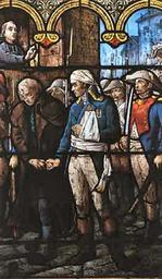 Keywords: Mort de Charette.jpg en Stained glass window of the Saint-Pauvin church of Le Pin-en-Mauges representing general Charette on his way to execution on March 26 1796 http //www loire-france com/histoire/guerres-vendee/vitraux/galerie/pages/vitrail-080 htm Jean Clamens 1897 PD-old Stained glass windows in Maine-et-Loire Église Saint-Pavin du Pin-en-Mauges François-Athanase Charette de La Contrie Jean Clamens 1897 stained glass windows 1796 in Bretagne History of Nantes |