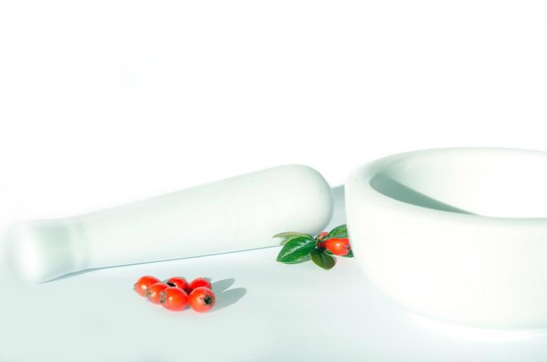 Keywords: mortar red berries cuisine seasoning cooking ingredient white ceramic decoration pharmaceuticals medicine fresh crushed herbalist natural food