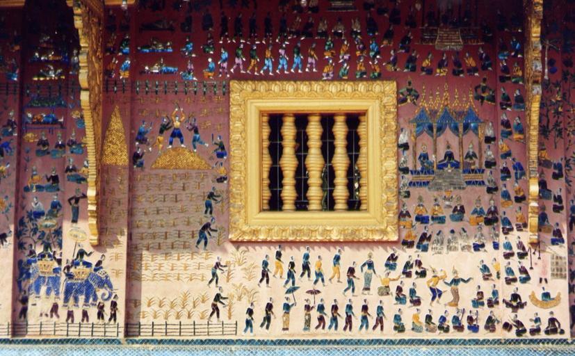 Keywords: Mosaic.jpg Mosaic detail from the wall of Wat Xien Thong temple Luang Prabang Laos Picture taken 29 -31 10 1998 2007-03-11 own assumed Plicata Red chapel of Wat Xieng Thong