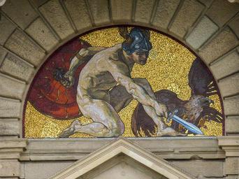 Keywords: mosaic artwork building house government munich bavarian state cancellery court bavaria germany hofgarten stone building architecture renaissance style history scenery