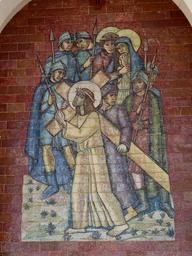 Keywords: mosaic fatima place of pilgrimage pilgrimage portugal believe make a pilgrimage pilgrim religion christianity church image passion suffering christ good friday crucifixion soldiers