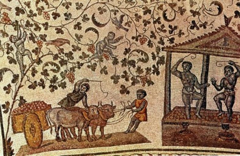 Keywords: Mosaique santa costanza.jpg Scène de vendanges Rome IVe siècle av J -C Source http //www cde-bagnoaripoli it/cde/agromidage2/buoni/vite5 htm PD-Art Original upload log fr wikipedia Mosaique_santa_costanza jpg 2005-11-05 09 38 Yelkrokoyade 461×300× 83168 bytes <nowiki></nowiki> Vintage in art Santa Costanza Rome - mosaics |