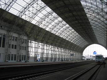 Keywords: Moscow Kievsy Rail Station glass and steel roof.jpg Glass and aluminum roof of Kievsky Rail Stration Moscow own 2006-04-29 Kucharek 21 49 19 August 2006 UTC free Kiyevsky Rail Terminal Vladimir Shukhov Train sheds Transparent roofs in Russia |