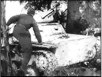 | Keywords: Moscow Strikes Back 20-15 Tank Crewman Jumps Aboard.jpg en Still from Moscow Strikes Back Soviet documentary of the Battle of Moscow Directed by Ilya Kopalin 1 of 4 films to win the 1943 Academy Award for Best Documentary 1942 https //archive org/details/MoscowStrikesBack Ilya Kopalin director other versions cc-zero War films Ilya Kopalin Uploaded with UploadWizard Moscow Strikes Back | ||||