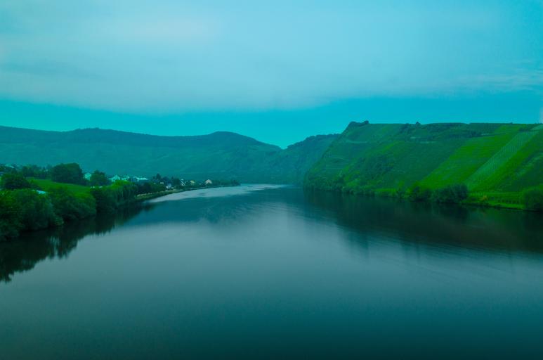 Keywords: mosel minheim piesport blue hour evening twilight wine vineyard winegrowing nature landscape vines river water mood slope