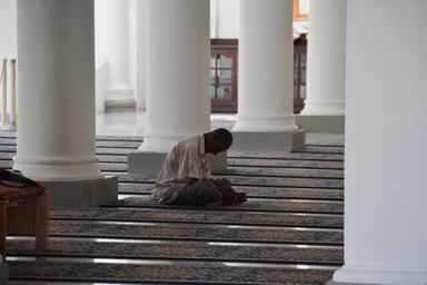 Keywords: mosque praying muslim islam religion pray islamic prayer religious holy culture ramadan allah traditional faith worship spiritual belief god man building interior architecture asian penang malaysia quiet silent indoors person one silence