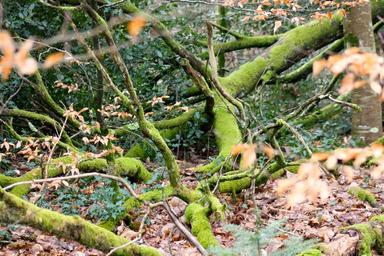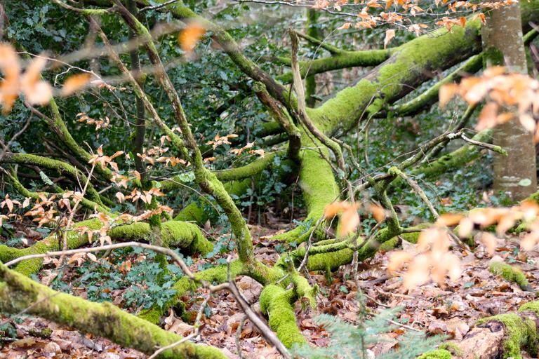 Keywords: moss covered branches woodland tangle fallen branches tree debris