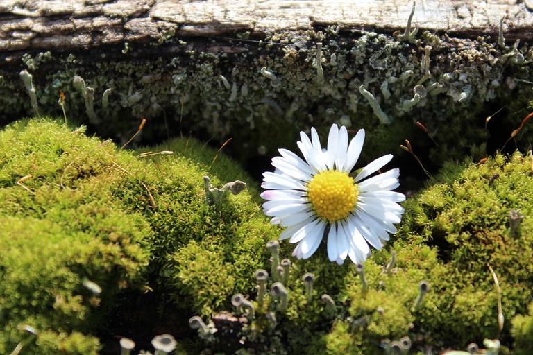 Keywords: moss daisy deco nature decoration wood green garden close background spring blossom bloom plant