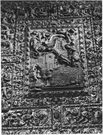 | Keywords: talha portugal mosteiro são martinho tibães capela robert smith fundação calouste gulbenkian fundaçãocaloustegulbenkian braga biblioteca de arte bibliotecadearte Capela de Santa Gertrudes: relevo da morte santa. Talha dos séculos 17-18. Fotógrafo: Robert Chester Smith (1912-1975). Data de produção da fotografia original: 1962-1964. [CFT008.0230.ic] Capela de Santa Gertrudes: relevo da morte santa. Talha dos séculos 17-18. Fotógrafo: Robert Chester Smith (1912-1975). Data de produção da fotografia original: 1962-1964. [CFT008.0230.ic] |