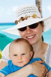 Keywords: mother fun baby happy smiling summer people water sea woman blue beach child tropical joy bright toddler vacation mom portrait boy