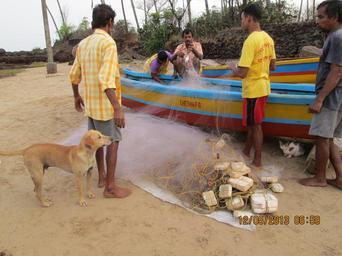 Keywords: Motorized canoe fishing Industry of Chivla beach..JPG en Fish being seperated from the nets of a mechanized fishing canoe boat own Rudolph A furtado Sunday 12-5-2013 Chivla Beach Cc-zero
