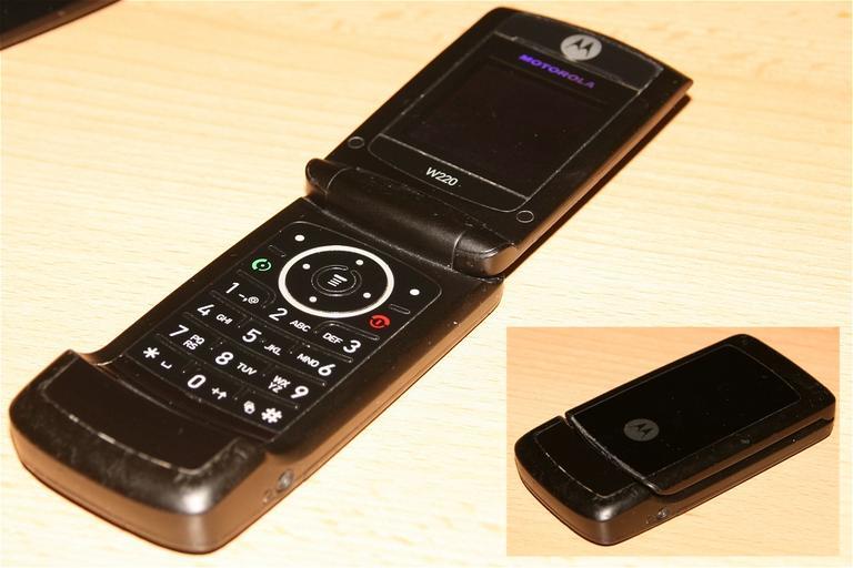 Keywords: Motorola W220.jpg en The Motorola W220 in all its outdated glory own Samslipknot 2011-02-20 Cc-zero Motorola mobile phones