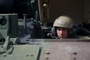 | Keywords: noble partner noblepartner army usareur u.s. army usarmy u.s. army europe usarmyeurope tanks war cannon 3id people indoor VAZIANI TRAINING AREA, Georgia — A Soldier assigned to 1st Battalion., 64th Armor Regiment, 1st Brigade, 3rd Infantry Division, drives a Bradley Infantry Fighting Vehicle at Vaziani Training Area, Georgia, May 6, in preparation for Noble Partner 16. The exercise is scheduled to take place May 11 to 26 and will include approximately 1300 participants from the U.S., Georgia and the U.K. Noble Partner 16 is a critical part of Georgia's training for its contribution of a light infantry company to the NATO Response Force (NRF) and enhances Georgian territorial self-defense capability. (Photo by Sgt. Daniel Cole, U.S. Army Europe Public Affairs) VAZIANI TRAINING AREA, Georgia — A Soldier assigned to 1st Battalion., 64th Armor Regiment, 1st Brigade, 3rd Infantry Division, drives a Bradley Infantry Fighting Vehicle at Vaziani Training Area, Georgia, May 6, in preparation for Noble Partner 16. The exercise is scheduled to take place May 11 to 26 and will include approximately 1300 participants from the U.S., Georgia and the U.K. Noble Partner 16 is a critical part of Georgia's training for its contribution of a light infantry company to the NATO Response Force (NRF) and enhances Georgian territorial self-defense capability. (Photo by Sgt. Daniel Cole, U.S. Army Europe Public Affairs) |