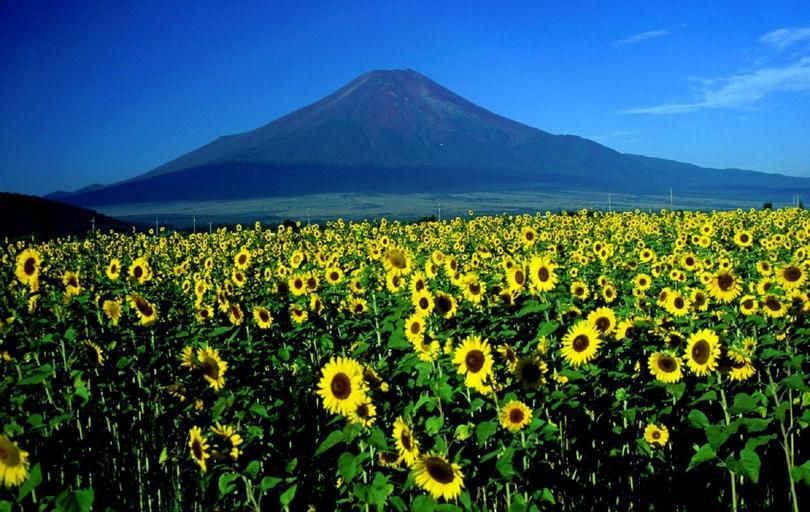 Keywords: mount fuji sunflowers landscape japan mountain countryside flowers blooms blooming agriculture scenic
