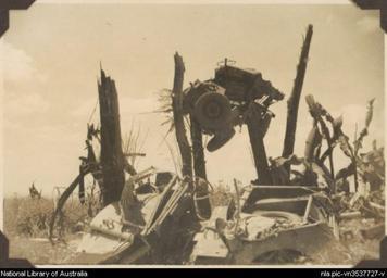 | Keywords: Mount Lamington devastation.jpg A jeep up a tree The result of the 1951 eruption of Mount Lamington in Papua New Guinea Author Speer Albert 1951 Source http //nla gov au/nla pic-vn3537727 National Library of Australia PD-Australia Papua New Guinea 1951 |