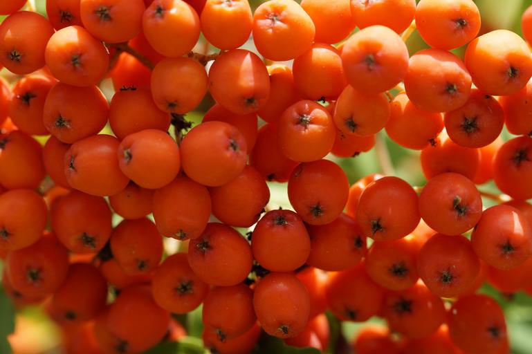 Keywords: mountain ash red berries rowanberries close macro orange summer fruits yield