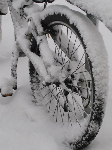 Keywords: mountain bike bike rear wheel circuit mature rim spokes snowed in snow winter wheel snowy deep snow wintry