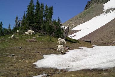 MAKE A MEME View Large Image David Restivo, NPS A group of mountain goats near Logan Pass. Photo: David Restivo, NPS