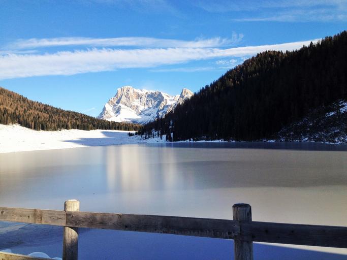 Keywords: mountain lake winter snow ice nature trentino dolomites