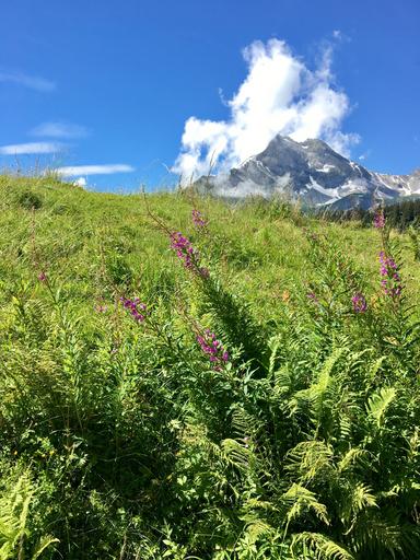 Keywords: mountain meadow mountain flower clouds landscape glarus summer nature mood alpine forest sky hike mountain stream panorama waterfall braunwald