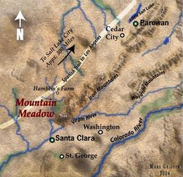| Keywords: Mountain meadows map5.png Map of Southern Utah in 1857 highlighting the Mountain Meadows area including the Wasatch Mountains and Colorado River This is a cropped version of Image Mountain meadows map5 jpg in the more appropriate PNG format Note This map is not accurate although I can't speak to how effectively it locates the Hamblin house now a museum in Santa Clara or Mountain Meadows Washington St George and Santa Clara are all shown 10-20 miles east of their actual locations Notice that Santa Clara not St George is shown to be on the Virgin River I made this image myself Original was uploaded on 13 May 2005 Marklemagne Public domain 100px marklemagne Iron County Utah Jacob Hamblin Mountain Meadows massacre maps Maps of Utah Washington County Utah |